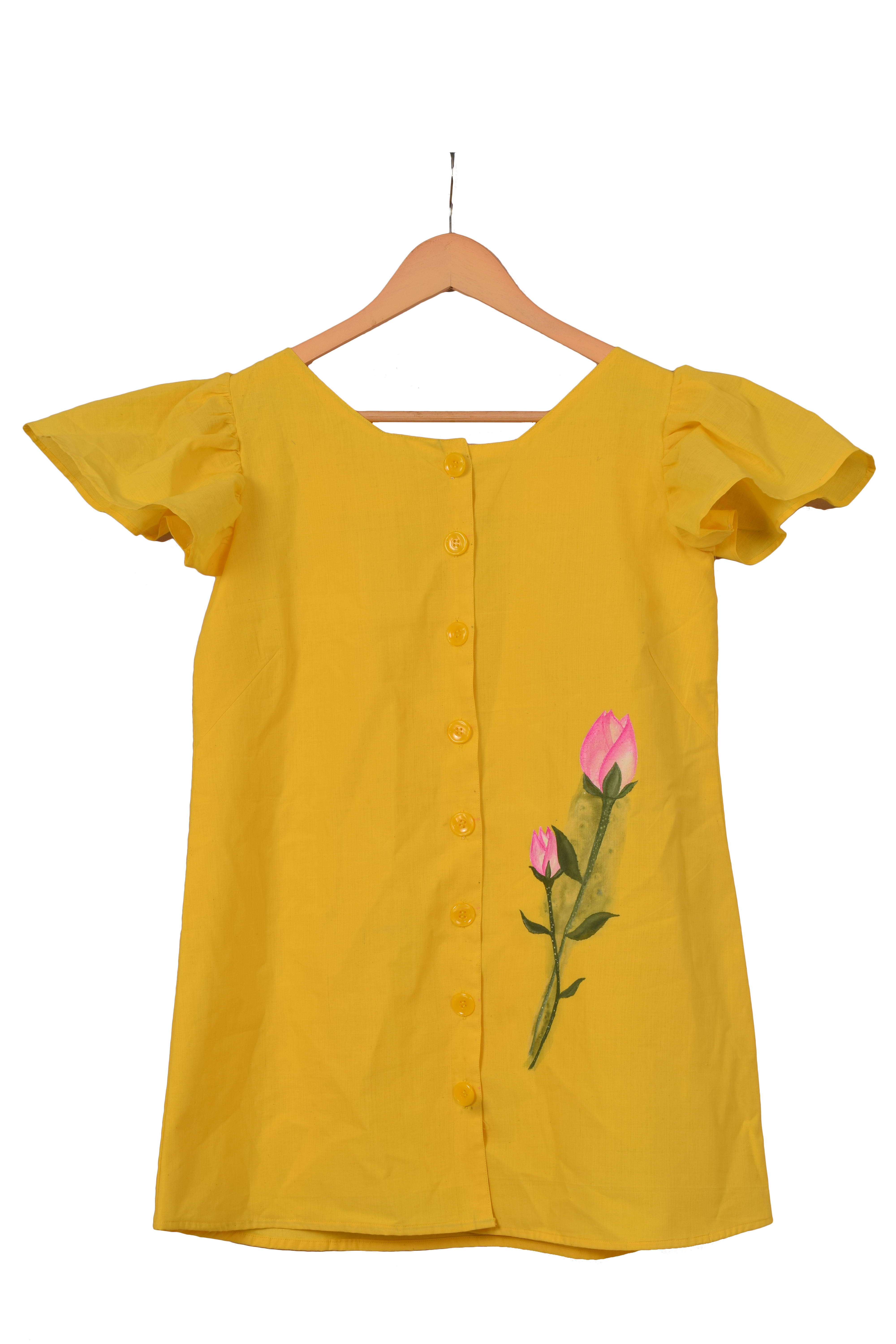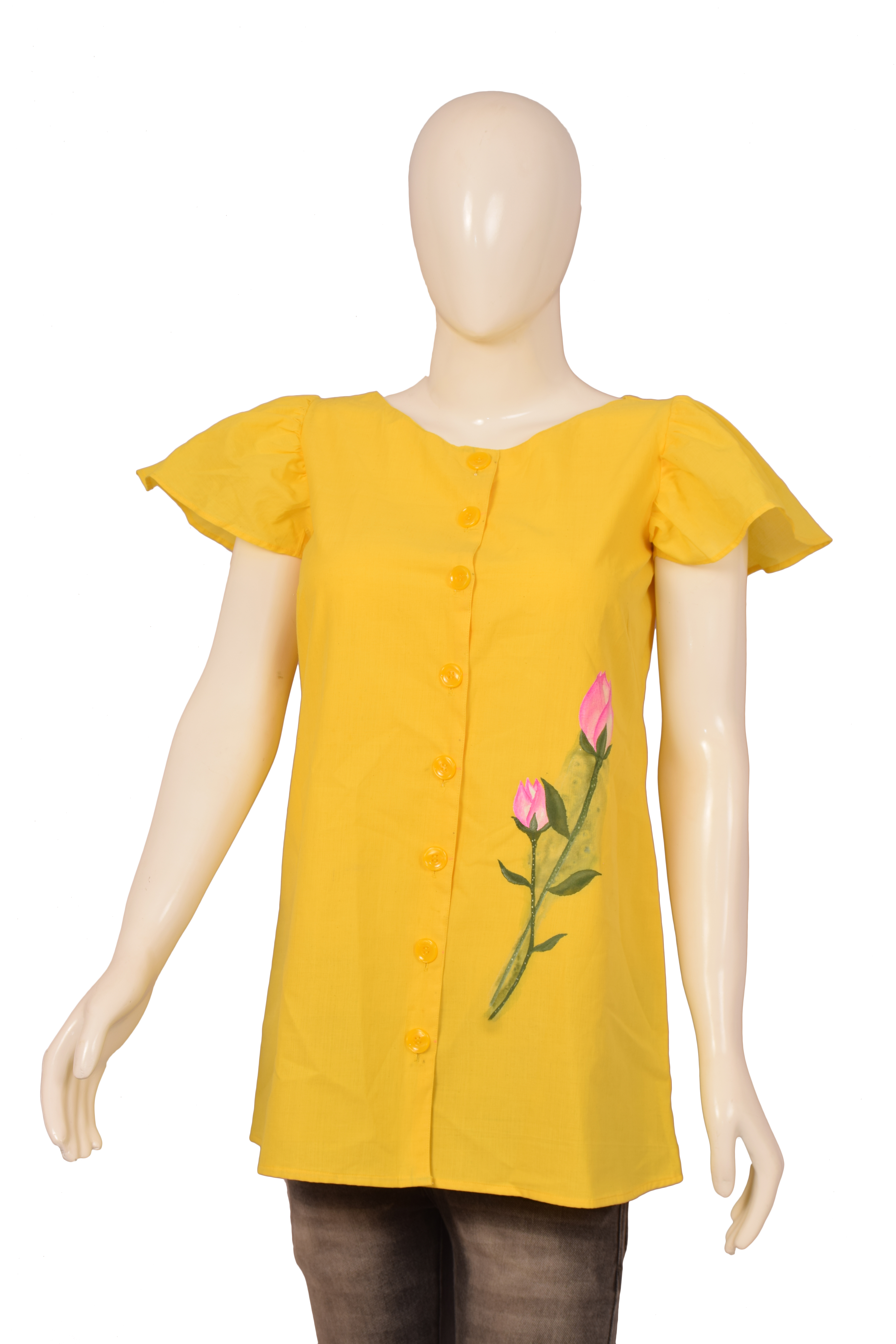 Mustard Yellow Pochampally Cotton Top with Handpainted Design